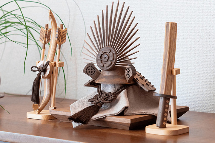 「人と木」のブランド名で人形や装飾品など木製品を通信販売するウィニーズホールディングス(南区京橋町、尾田雅史社長)は、かぶと飾りの新作2種を発売した。