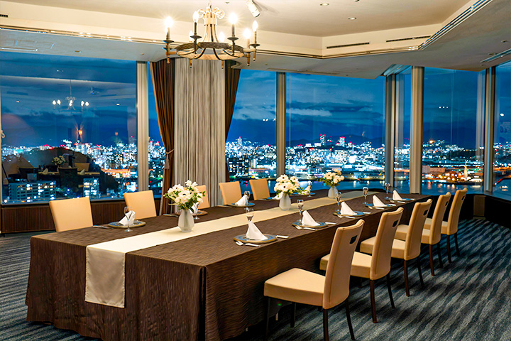 グランドプリンスホテル広島の22階にある洋食レストラン。和食も楽しみたいという顧客の声をきっかけに料理長自らが企画し、昨年誕生したランチ限定の和洋コースが好評を博している。7月からディナーでも提供する。