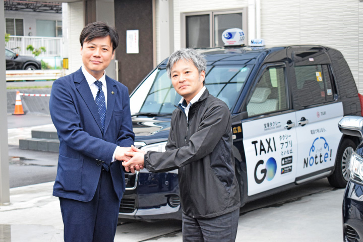 急いでいる時に限ってタクシーがつかまらない。何とか解消できないかという利用者の声に応え、カープタクシー(南区)と宝塚かもめタクシー(東区)は5月1日、新たな電話共同配車サービス「Notte!(ノッテ)」を始めた。